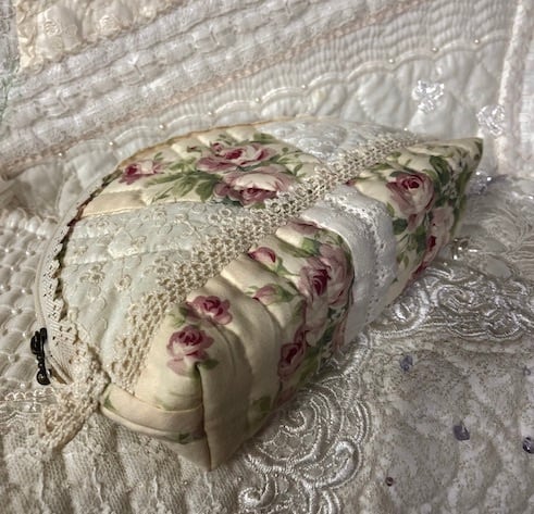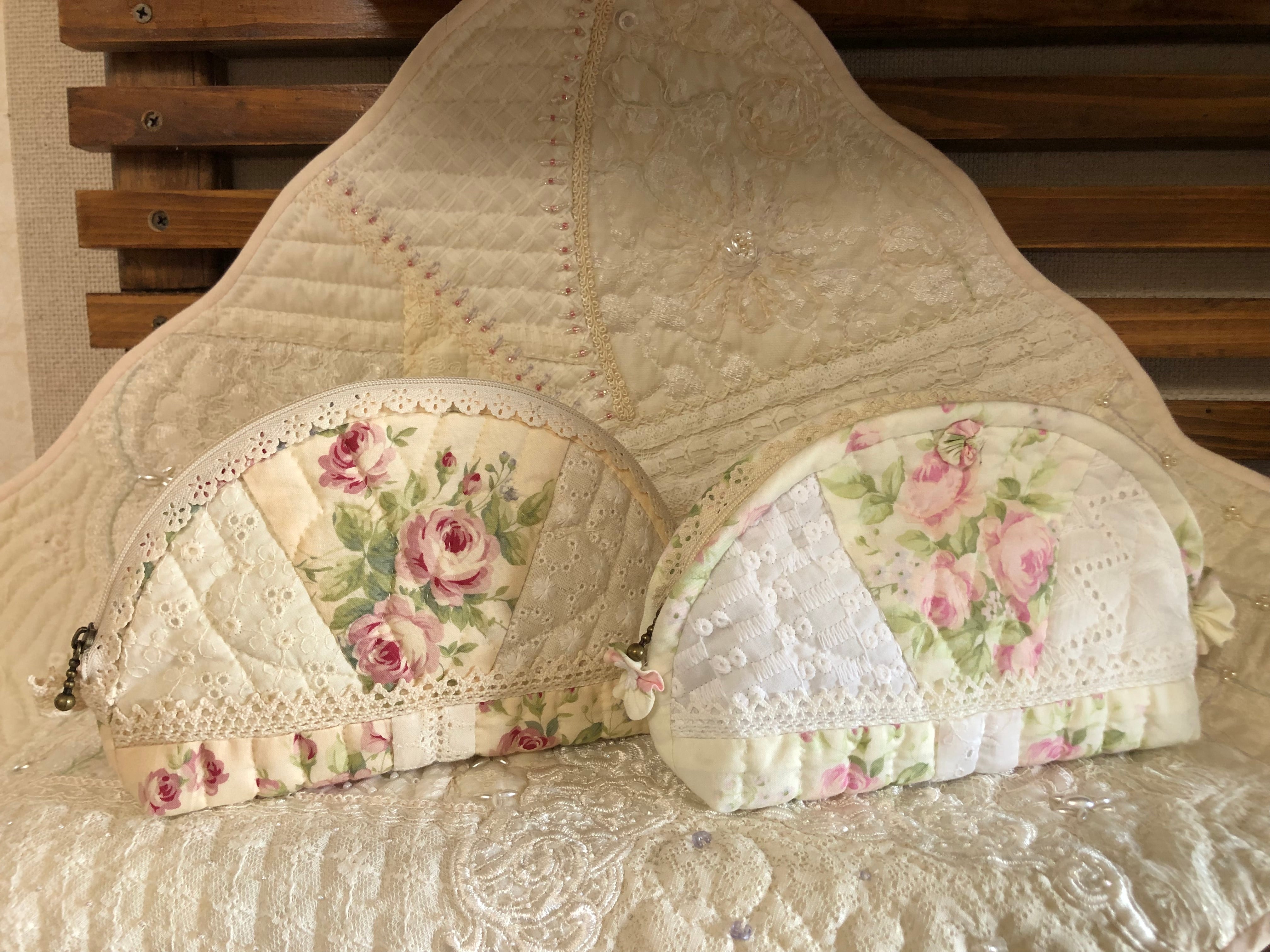 薔薇とレースで作るレースファスナーポーチ