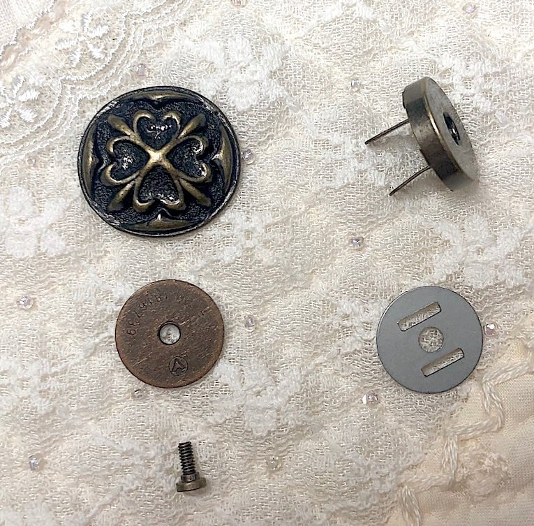 ボタン風飾りの裏側にマグネットを小さなネジで留めます