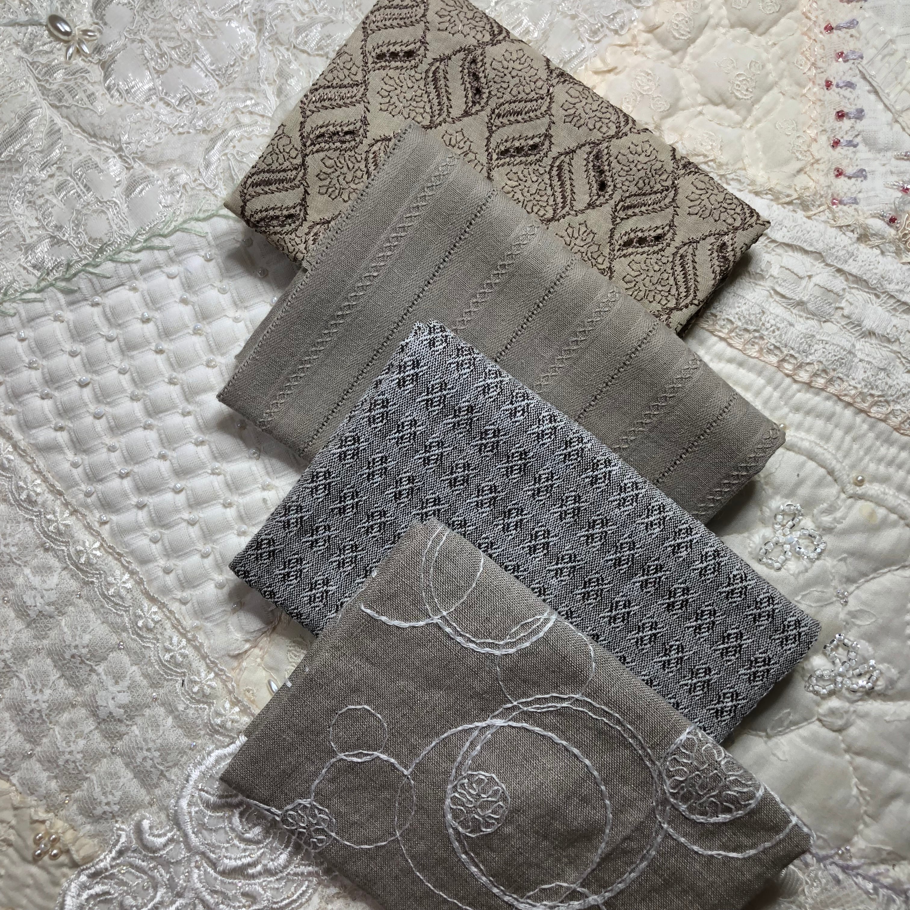 上から3枚まで同じ布でそれぞれ綿麻の刺繍レースが違います